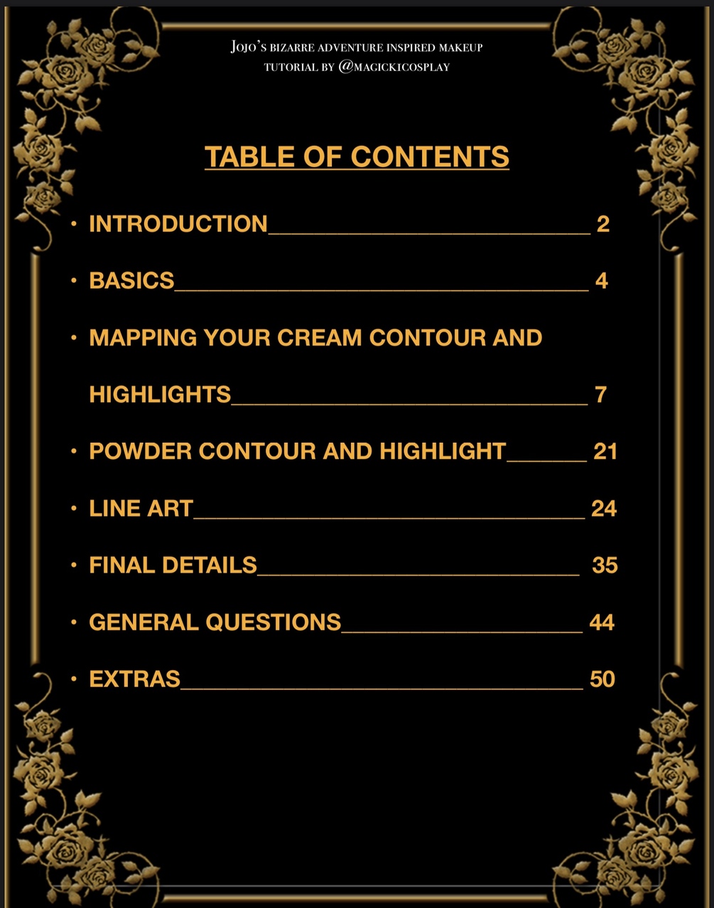 A detailed Step-By-Step Tutorial on how to make yourself look straight out of Araki’s famous manga, Jojo’s Bizarre Adventure. All in one PDF with 53 pages. Featuring the makeup for JJBA Golden Wind’s Leone Abbacchio. The process is applicable to any Jojo character you desire.